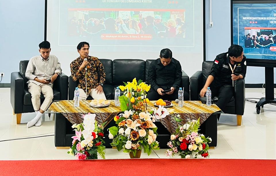 Kegiatan yang berlangsung di Auditorium FISIP menghadirkan tiga narasumber dari berbagai latar belakang, yakni Dr. Mukayat Al-Amin, S.Sos., M.Sosio; Abdul Ghoni Mukhlas Niam, S.Pd.I; dan Yono Malolo, S.Sos.